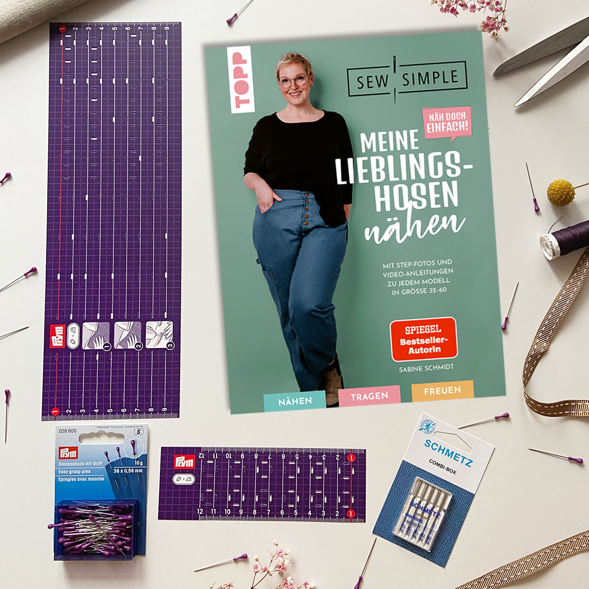 Ich habe inzwischen alle Geschenksets von Sabine Schmidt gekauft und wollte natürlich auch dieses haben. Unsicher war ich in Bezug auf die Bügellienale von Prym. Beim Ausprobieren waren die Zweifeln weggebügelt - es ist eine großartige Hilfe! Die Hosenmodelle passen hervorragend zum Oberteilen-Buch von Frau Schmidt.