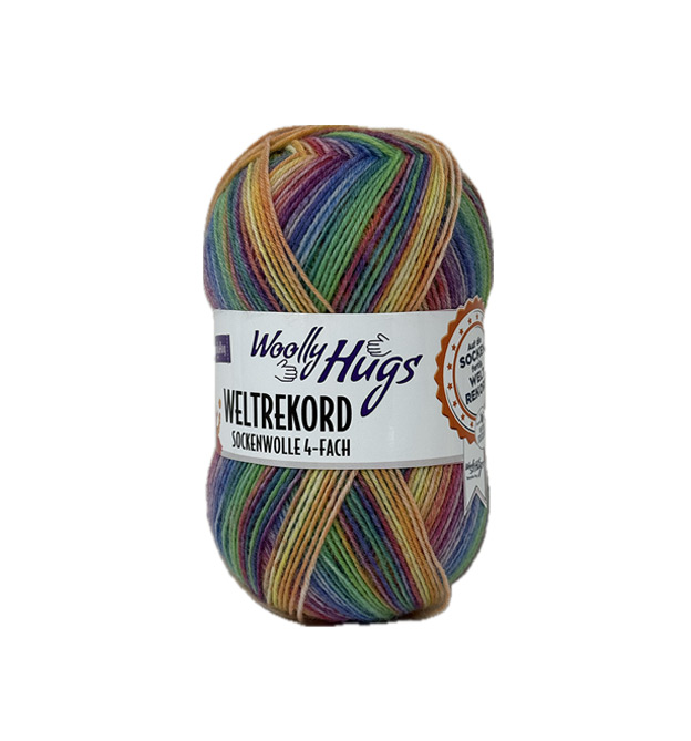 - Weltrekord Sockenwolle 4-Fach von Woolly Hugs in Regenbogenfarbe