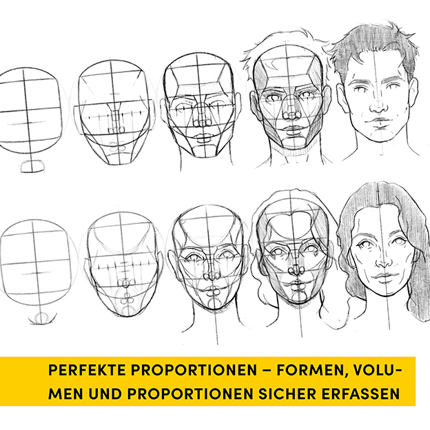 - freies Zeichnen meistern und Köpfe aus jeder Blickrichtung konstruieren