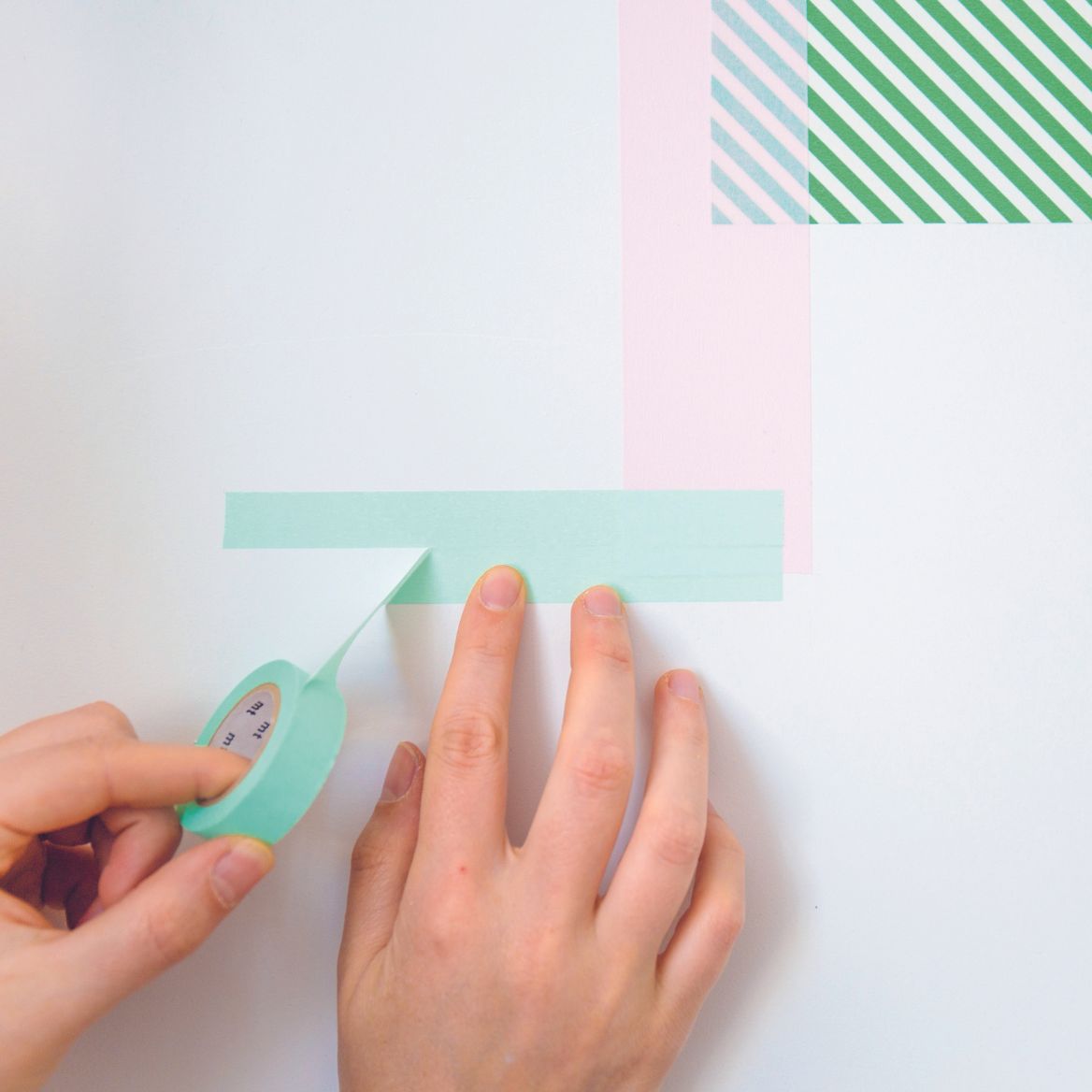 Farbe irgendwo hin. Die Wand wird komplett mit Washi Tape