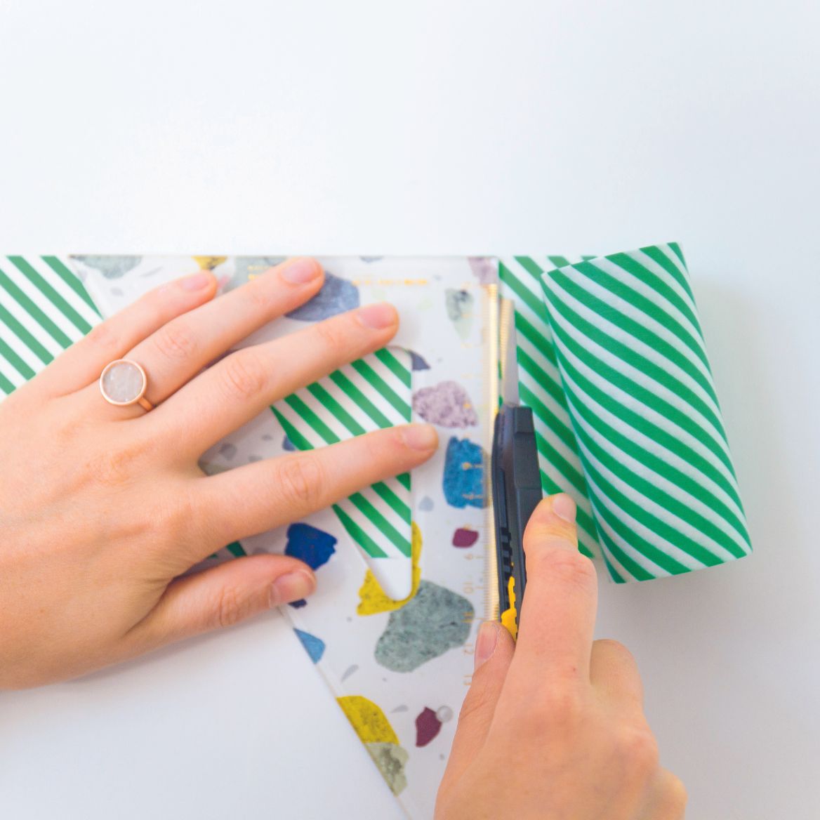 Mit der kleinen Washi Rolle Streifen akkurat nebeneinander kleben