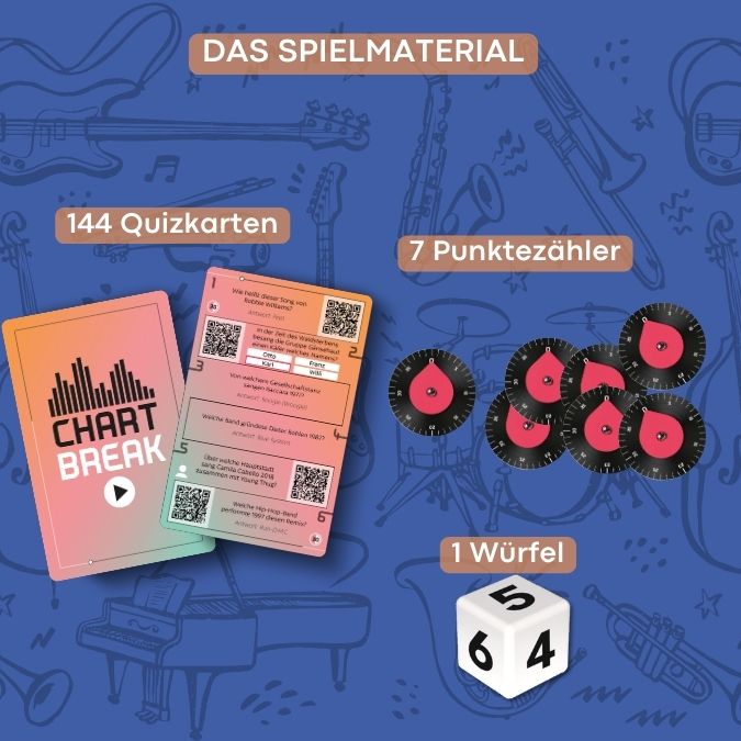Hinweis: Einige Fragen nutzen Spotify. Für das Spiel benötigt die Spielgruppe mindestens ein Smartgerät mit Internetzugang. Ein Spotify Premium Account ist nicht zwingend erforderlich, erleichtert aber das Spiel.