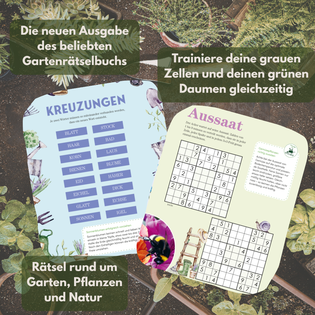 - 160 Seiten voller Rätsel rund um Garten, Pflanzen & Natur