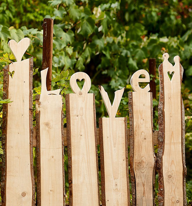 • 15 Varianten für Holzzäune mit folgenden Motiven un: Häuschen; Ente mit ihren Küken; Anker, Fisch und Segelboot; HOME; Love; Kinderzimmermotiv; Waldtiere; Pilze; Tiere; Eulen im Mondschein; Vogelgezwitscher; Katzen-Trio; Weihnachtszeit; Gartenzaun mit Familienname