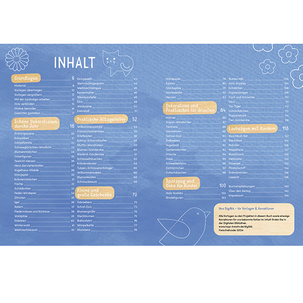 Laubsägen macht Spaß und lässt im Handumdrehen wunderschöne Dekorationen, nützliche Alltagsgegenstände und kleine Geschenke entstehen – mit Liebe selbstgemacht! Dieses Buch bietet eine umfangreiche Sammlung von Motiven, die direkt auf Holz übertragen werden können – flexibel skalierbar aus der digitalen Bibliothek. Besonders große Motive gibt es zusätzlich auf dem Vorlagenbogen. Dank klarer Schritt-für-Schritt-Anleitungen und einem übersichtlichen Grundlagenteil gelingt der Einstieg problemlos, auch ohne Vorkenntnisse.