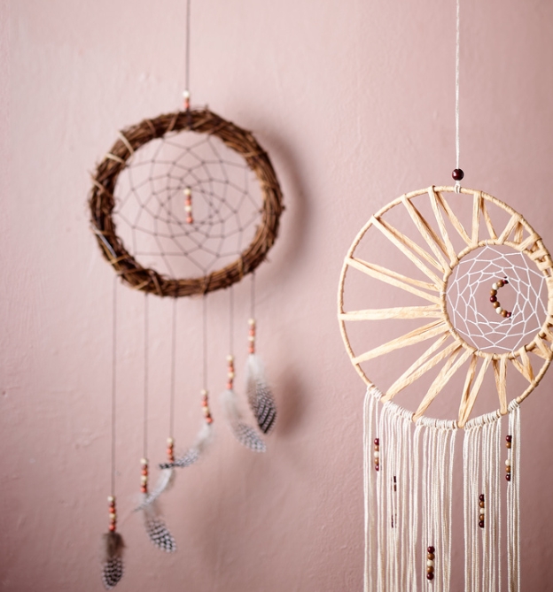 Traumfänger sollen den Schlaf verbessern, indem sie böse Träume einfangen und "unschädlich machen". Zudem sind sie einfach schöne filigrane Deko-Objekte, die perfekt zum aktuellen Boho-Tred passen.