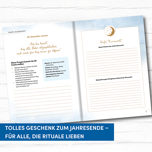 - Anleitungs- & Eintragebuch (32 Seiten) mit wertvollen Ritual-Tipps