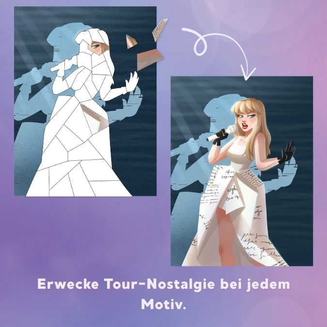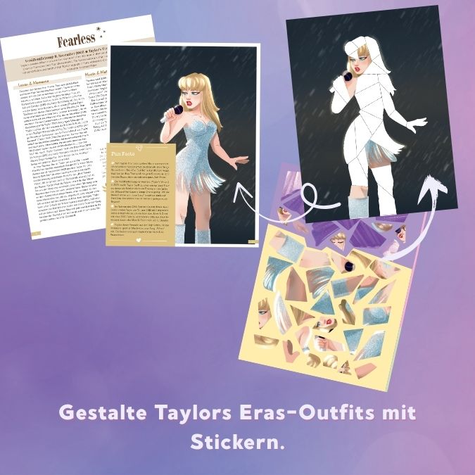 Erlebe die Magie der Eras Tour noch einmal mit diesem einzigartigen Stickerbuch! Tauche ein in die Welt von Taylor Swift und setze mit Mosaik-Stickern ihre ikonischen Bühnenoutfits um. Nach dem beliebten Malen-nach-Zahlen-Prinzip setzt du nach und nach kleine Sticker auf die vorgegebenen Felder und enthüllst so atemberaubende Looks aus den 11 Eras ihrer Tour. Starte jetzt in deine kreative Me-Time!