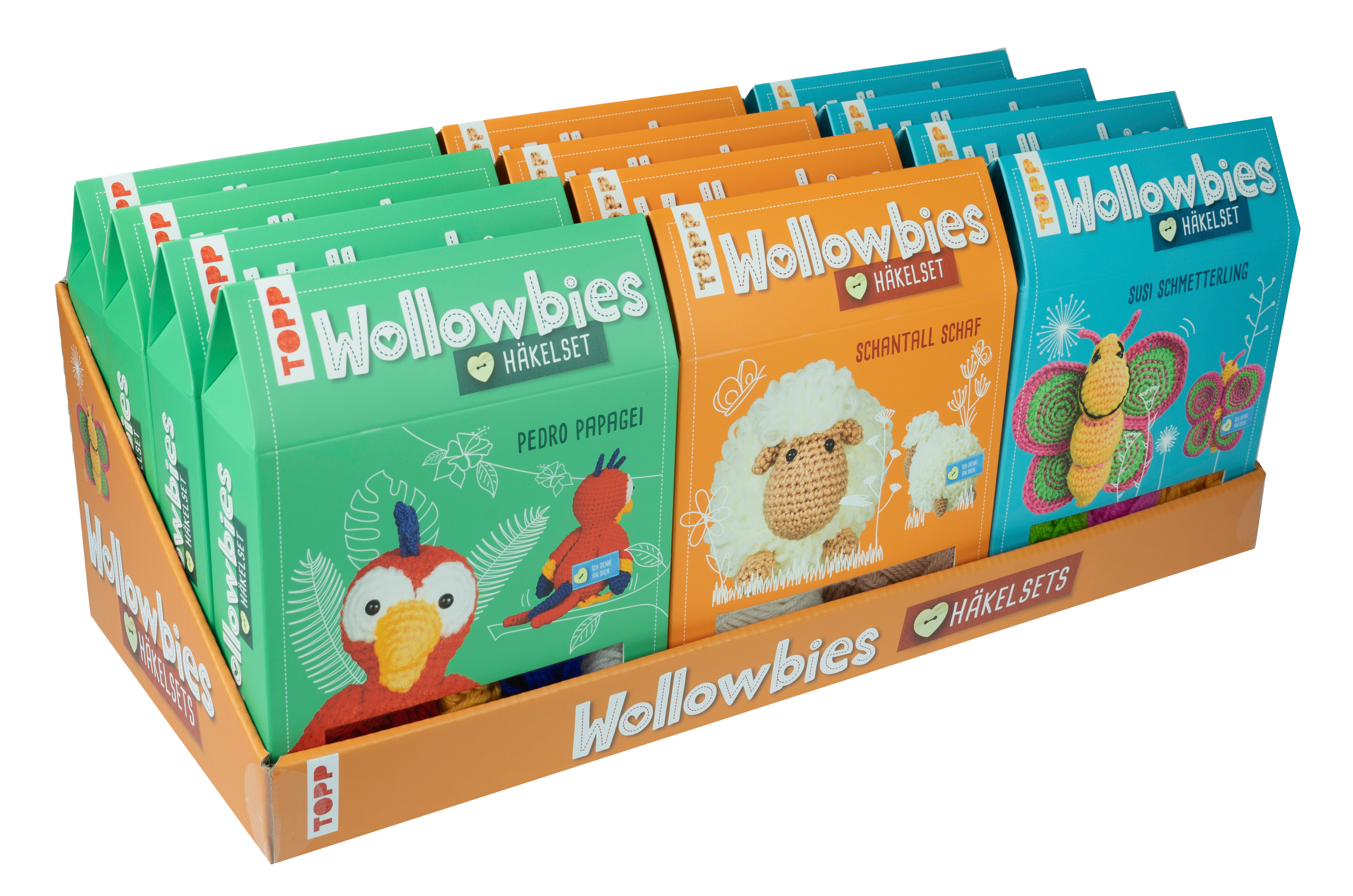 Wollowbies Häkelsets Papagei/ Schaf/ Schmetterling Display 3 x 4 Ex.