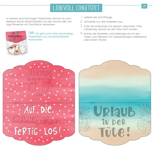 - 30 Vorlagen für liebevolle Lettering-Geschenke und -Deko, darunter Geschenk-Anhänger, Dekorationen, Geschenkverpackungen, Pop-up-Karten, Cake Topper, Minikalender, Mobile