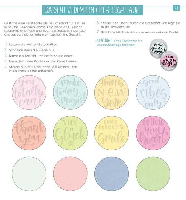 Eine kurze Einleitung zum Handlettering hilf bei der Umsetzung der Projekte. Der ideale Kreativ-Block für alle, die gleich loslegen möchten!