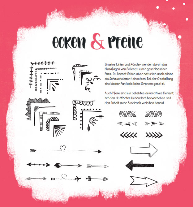 In diesem Buch zeigen 13 bekannte Bloggerinnen und Youtuberinnen, wie man seine Letterings individuell schmücken kann. Auf 176 Seiten geht es um Ränder, Banner, Blüten, Blätter, Schnörkel, kleine Illustrationen und ihre Verwendung in Handletterings. Diese Schmuckelemente bilden einen reichen Fundus für die Umsetzung eigener wundervoller Spruch-Kunstwerke. Als besonderes Extra gibt es einen Ausflug in die Welt der Schnörkel & Ligaturen sowie eine Zusammenstellung der beliebtesten Watercolor-Schmuckelemente. Ein unentbehrliches Buch für jeden begeisterten Handletterer und die, die es werden wollen!