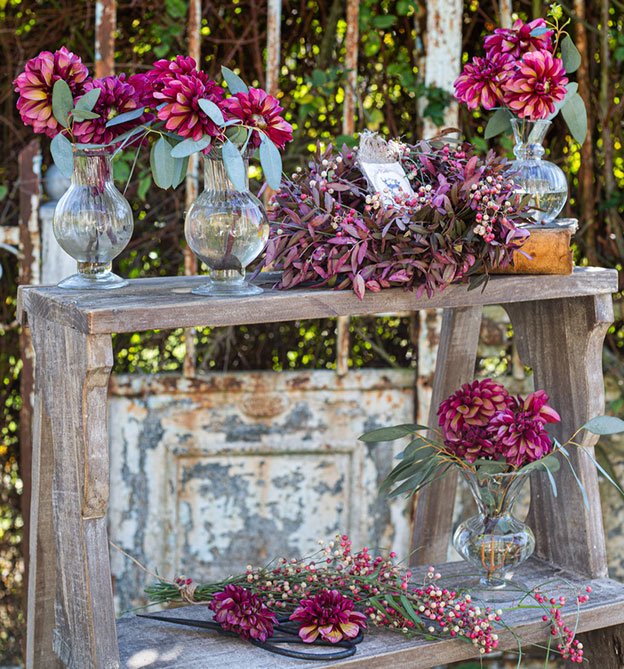 Liebevolle Dekorationen und Blumenarrangements für die kalte Jahreshälfte