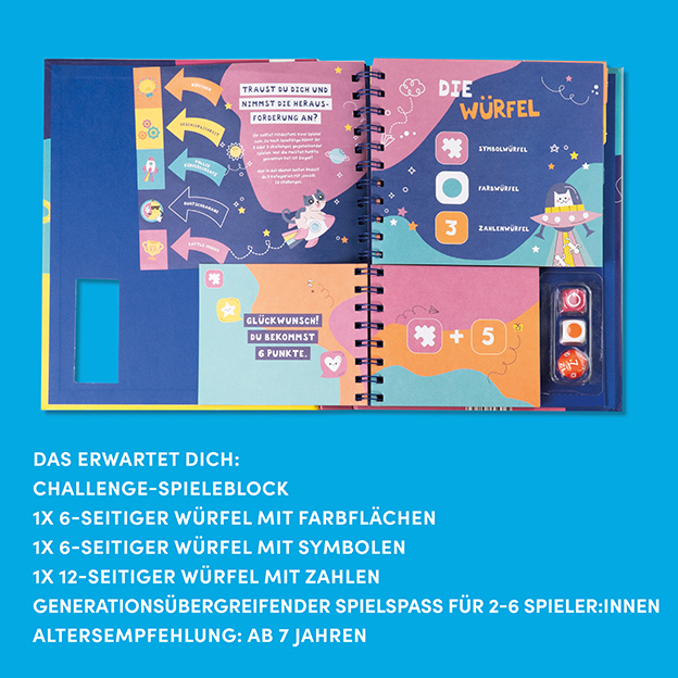 Höher, schneller, weiter! Der Challenge-Spieleblock mit 3 Würfeln