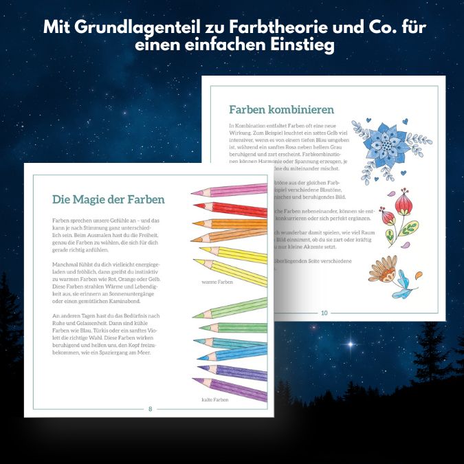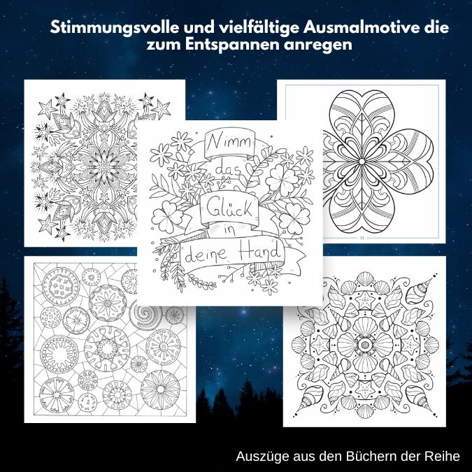 - stimmungsvolle und vielfältige Ausmalmotive