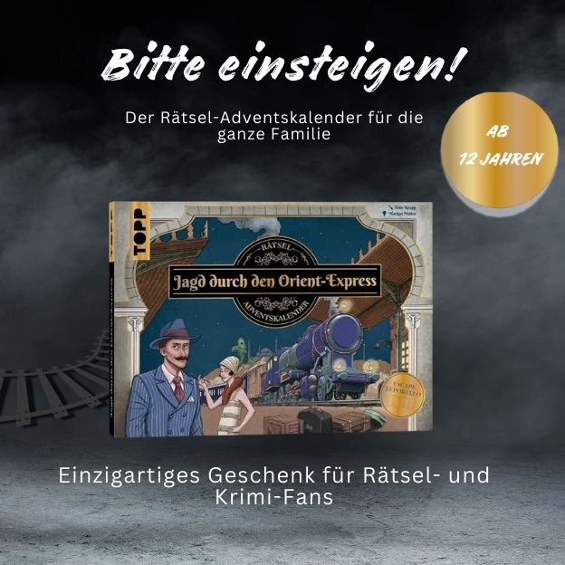 Das Escape-Leporello ist nicht nur ein Adventskalender, sondern auch ein einzigartiges Geschenk für Rätsel- und Krimi-Fans. Die hochwertige Gestaltung und die detailreichen Illustrationen entführen dich direkt in die Welt des legendären Orient-Expresses. Lass dich von der nostalgischen Atmosphäre verzaubern, genieße ein außergewöhnliches Rätselerlebnis und erlebe eine unvergessliche Reise in die Vergangenheit!