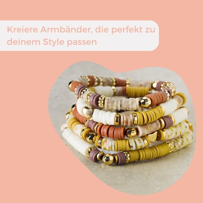 Gestalte fünf trendige Katsuki-Armbänder mit goldenen Akzenten und bring sommerliche Vibes an dein Handgelenk! Egal ob für dich selbst oder als Geschenk – mit diesem Schmuckset kreierst du stilvolle Schmuckstücke, die zu jedem Outfit passen. Perfekt für Einsteiger:innen und DIY-Fans!