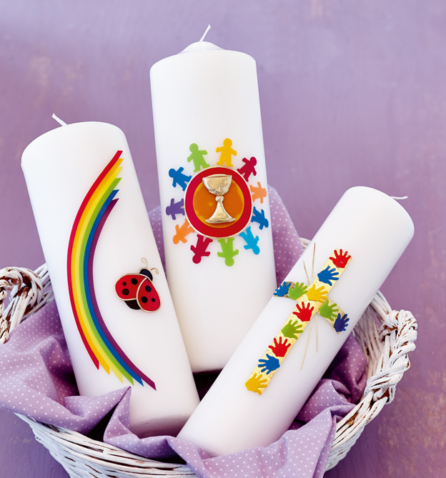 Kerzen können auf ganz unterschiedliche Weise gestaltet werden: mit Wachsplatten und Kerzenpen verziert oder in bunten Farben und ausgefallenen Techniken gegossen. Mit dieser Auswahl findet sich für jeden Anlass – Geburtstag, Hochzeit, Taufe, Weihnachten oder Ostern – die richtige Kerze.