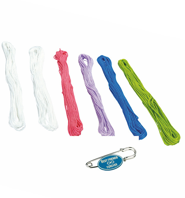 • 48 m Stickgarn (100% Baumwolle) in 5 Farben für bis zu 6 Freundschaftsbänder