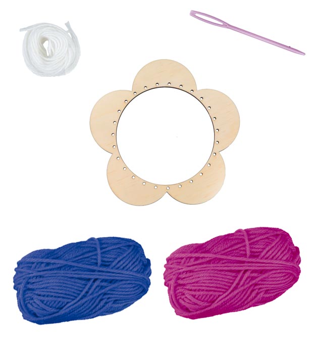Die alte Handabeitstechnik - Weben mit Webrahmen - im hübschen Blumendesign. Dieses Set enthält alles, was Kinder ab 6 Jahren zum Weben brauchen.
