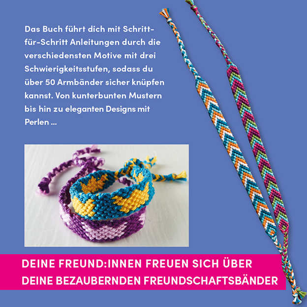 über 50 Armbänder Schritt für Schritt erklärt. Garn zum Knüpfen und bunte Perlen zum Sofort-Loslegen