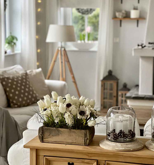 In der Großstadt Hamburg hat sie sich den Traum vom Landhausleben erfüllt. Ihr Zuhause hat sie liebevoll und mit einem Blick für Details eingerichtet. Je nach Jahreszeit dekoriert sie gekonnt um und setzt mit Naturmaterialien und frischen Blumen aus dem eigenen Garten farbenfrohe Highlights.
