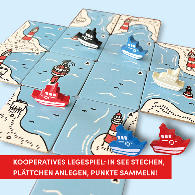Stecht in See und erkundet als Küstenwache die Inselwelt! In diesem kooperativen Legespiel plant ihr eure Routen, kontrolliert Leuchttürme und sichert gemeinsam die Wasserwege. Planung, Teamwork und Entdeckergeist sind gefragt, um möglichst viele Punkte zu sammeln.