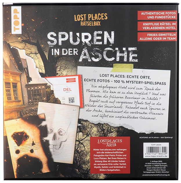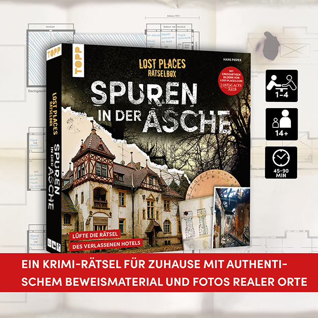 Lost Places Rätselbox – Spuren in der Asche: Ein Krimi-Rätsel für Zuhause. Lüfte die Rätsel des verlassenen Hotels