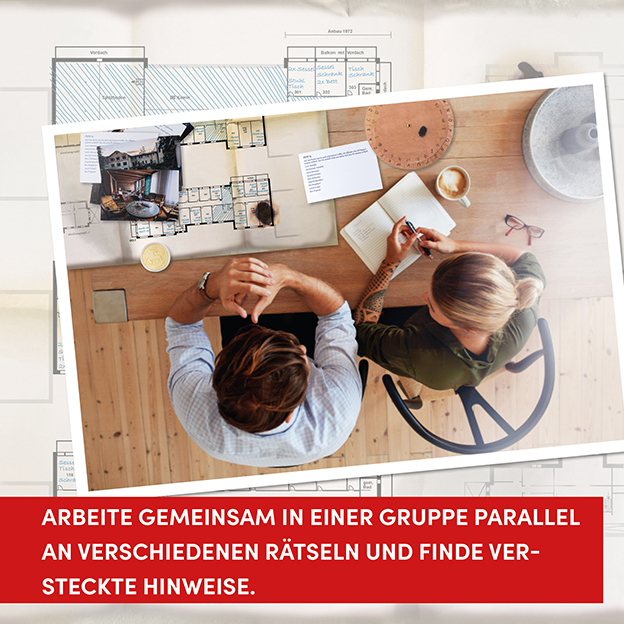 - Offenes Spielerlebnis: Arbeite gemeinsam in einer Gruppe parallel an verschiedenen Rätseln und finde versteckte Hinweise.