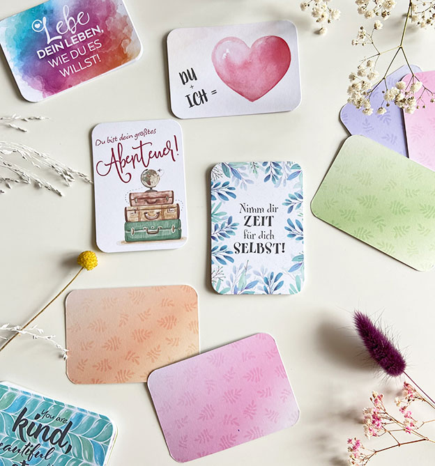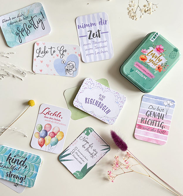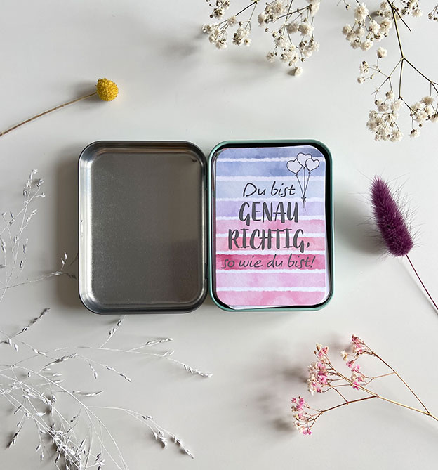 Metalldose mit 40 Sprüchekarten für mehr Stärke, Mut und Selbstliebe