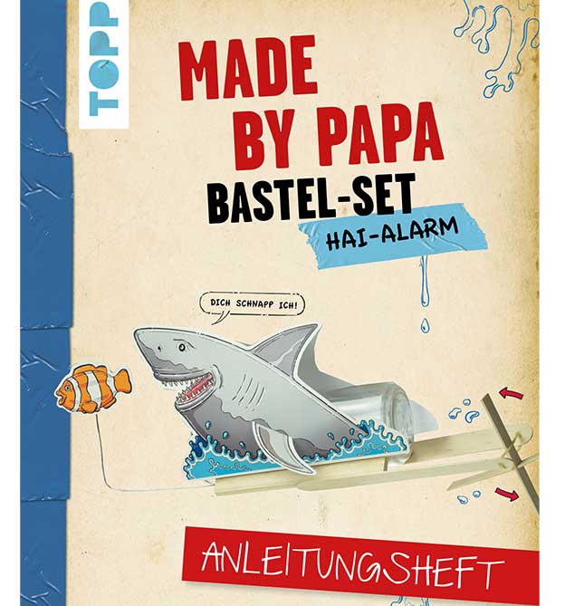 Verfolgungsjagd mit Biss! Das Komplett-Set zum Basteln eines hungrigen Hais auf Beutezug. Enthalten sind eine Plastikdose, Bastelstäbchen, Holzleisten, Gummibänder und wasserfeste Motivteile zum Aufkleben. Das beiliegende Anleitungsheft mit vielen Skizzen erleichtert Kindern und Vätern das Zusammenbauen und die Spielideen sorgen für viele lustige Momente. Ein einzigartig cooles Papa-Bastelprojekt!