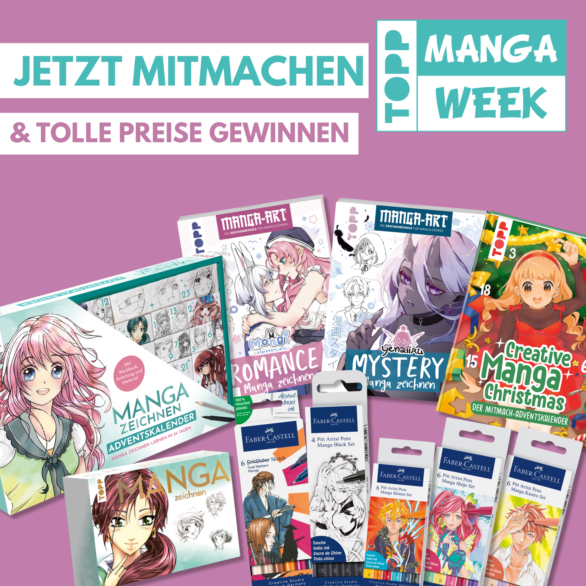 Vom 13. bis 16.9 dreht sich bei uns alles um das Thema Manga - denn es findet unsere große Manga Week statt. Freu dich auf kreative Tutorials rund um das Thema Gesichter zeichnen sowie eine große Abschluss-Challenge mit tollen Preisen von TOPP und Faber-Castell. Unsere Autor:innen Gecko Keck, Marumin und Mongi geben dir nicht nur einen Einblick hinter die Kulissen, sondern verraten dir auch ihre besten Tipps zum Zeichnen.