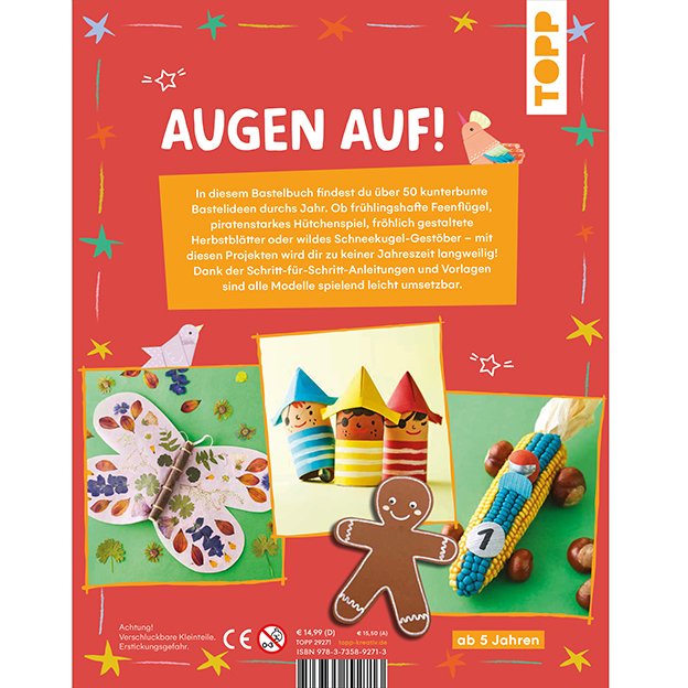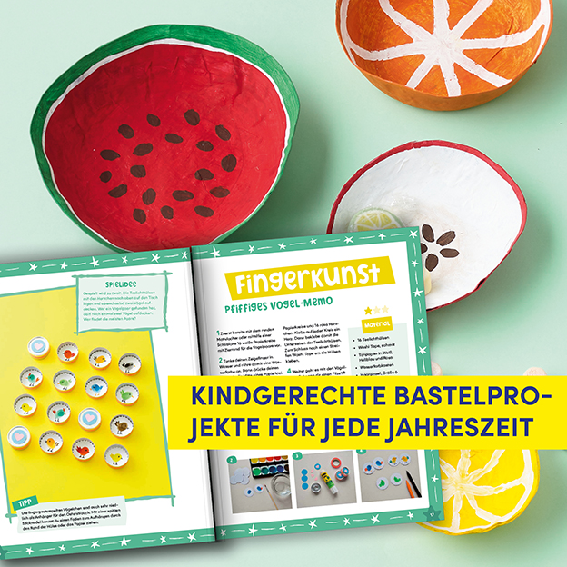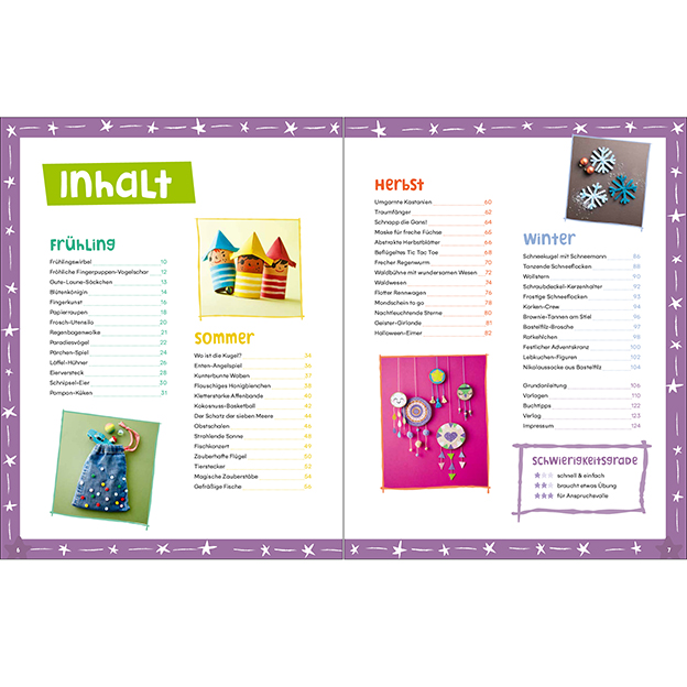 Von fröhlichen Frühlingsblumen über sommerliche Naturentdeckungen bis hin zu herbstlichen Blättern und winterlichen Bastelideen. In diesem Buch finden sich zahlreiche Bastelideen für das ganze Jahr. In einfachen Schritten können Kinder die Projekte erfolgreich nachbasteln und spielerisch ihre feinmotorischen Fähigkeiten verbessern.