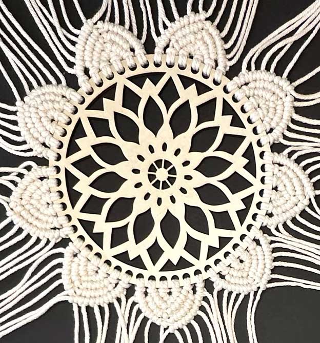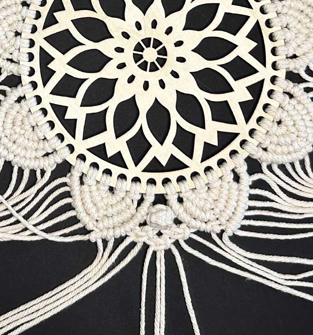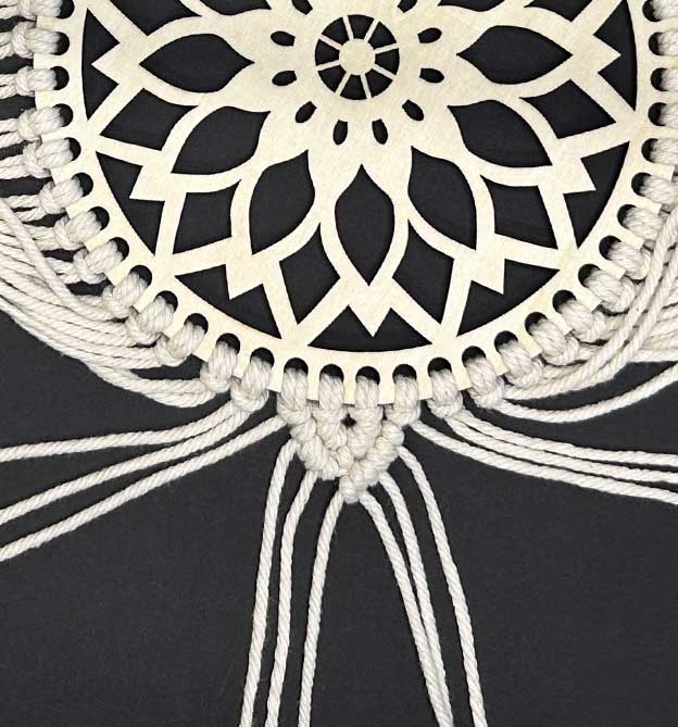 Detaillierte Makramee-Anleitung mit Schritt-für-Schritt-Fotos und Material für einen Wandbehang im angesagten Mandala-Look