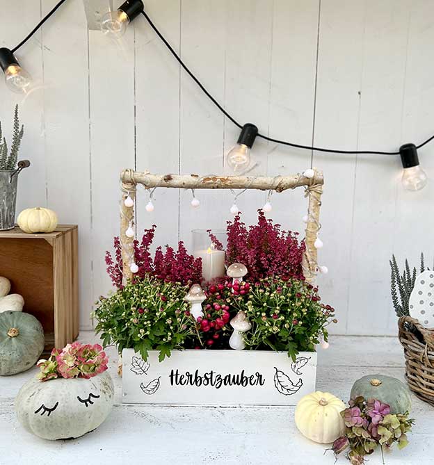 Der Herbst ist die Zeit, in der uns Garten und Wald mit vielen Naturmaterialien beschenken. Damit gestaltet Tina u.a. herbstlich inspirierte Kerzenständer und niedliche Halloween-DIYs .