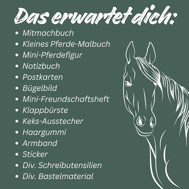 Dieser einzigartige Adventskalender ist ein Must-have für alle Pferde-Fans und lässt die Vorweihnachtszeit auf besondere Weise erstrahlen. Hinter den Boxen verbergen sich 24 kreative Überraschungen: Von wunderschönen Pferdestickern über glitzernde Armbänder bis hin zu bezaubernden Haaraccessoires und Schreibutensilien ist alles dabei, was die Herzen kleiner Pferde-Fans höherschlagen lässt. Im beiliegenden Mitmachheft gibt es jeden Tag Pferdewissen, Rätsel, Bastelanleitungen und vieles mehr zu entdecken.