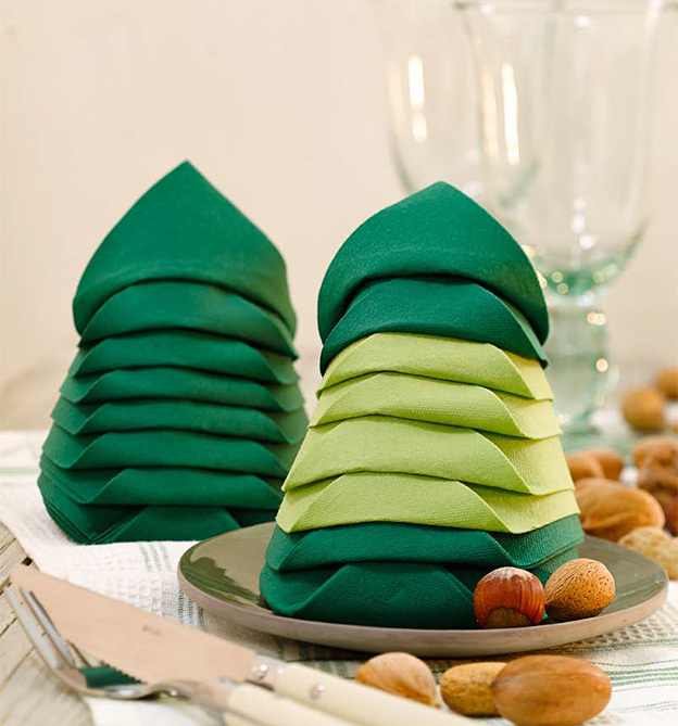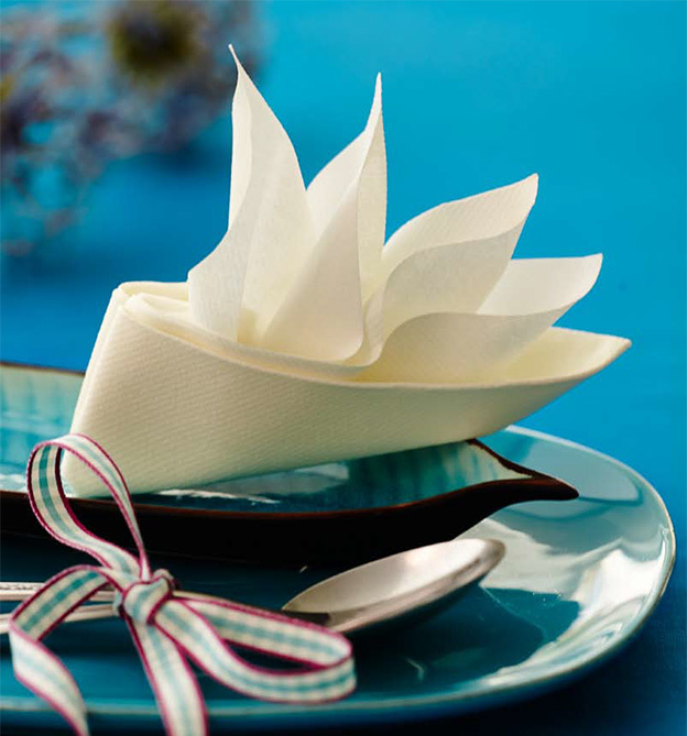 Dank vieler Faltskizzen wird das Nacharbeiten zum Kinderspiel, ganz egal, ob Sie Servietten aus Stoff, Vlies oder Papier verwenden.