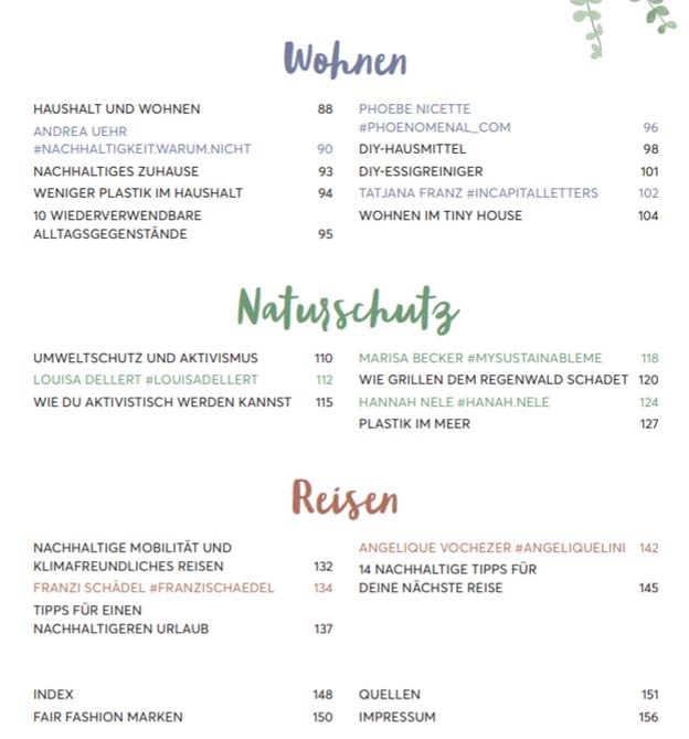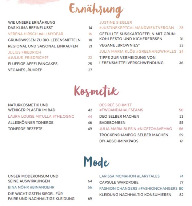 zu nachhaltiger Ernährung, fairen Reisen, DIY-Kosmetik, Upcycling und vielem mehr.