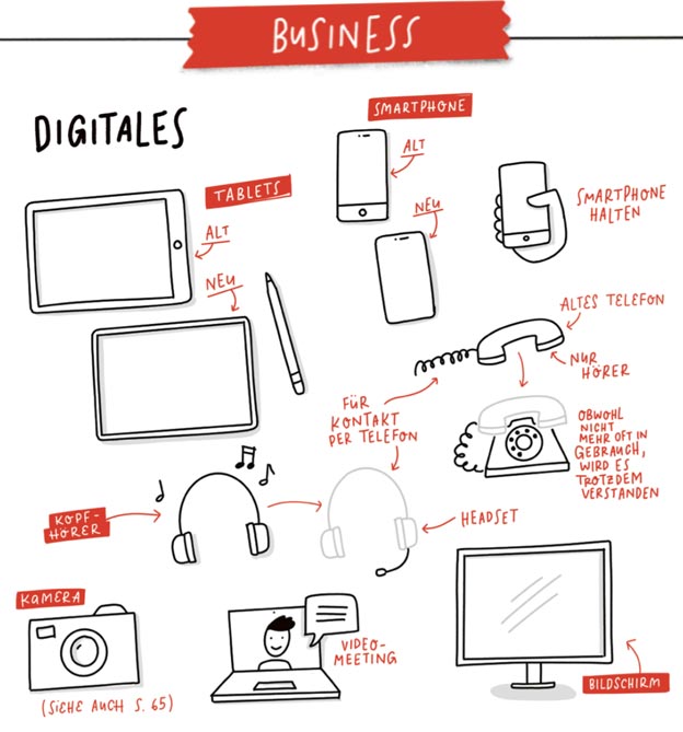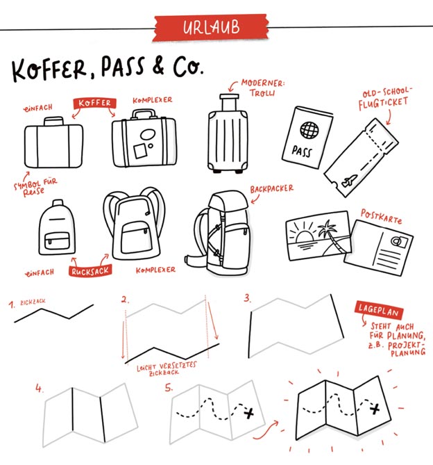 Wenn es ans Zeichnen von Symbolen geht, kommen viele ins Stocken. Es gelingt gerade noch, einfache Symbole für Häuser, Briefumschläge oder auch Glühlampen zu zeichnen, sobald es aber etwas komplexer wird, wird es schwierig. Das Problem ist dabei meist nicht, dass die Bilder im Kopf nicht da sind, sondern diese Kopfbilder auch aufs Blatt zu bringen.