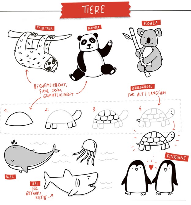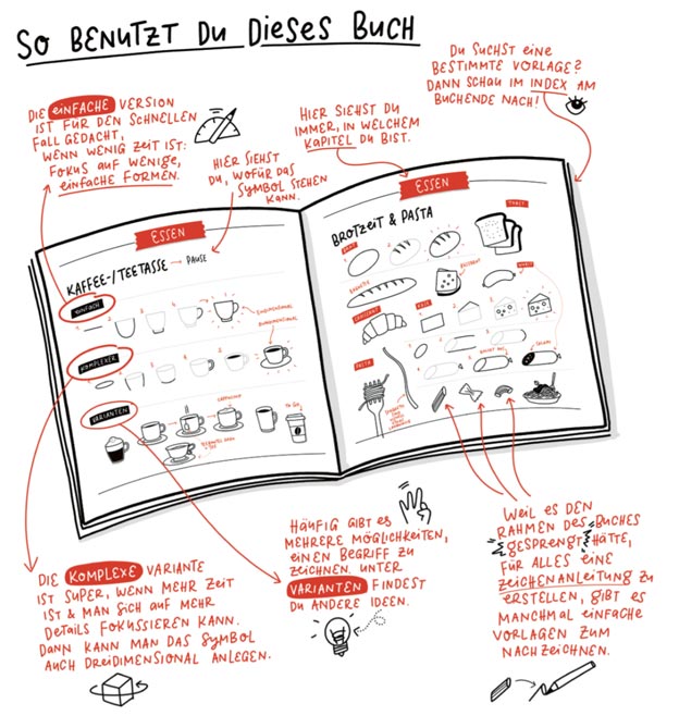 • An dieser Stelle setzt dieses Buch an, denn es ist voller Zeichenanleitungen und Vorlagen für die unterschiedlichsten Symbole – ideal für Sketchnotes, aber auch Bullet Journals oder für Kinder, die Zeichnen lernen möchten.