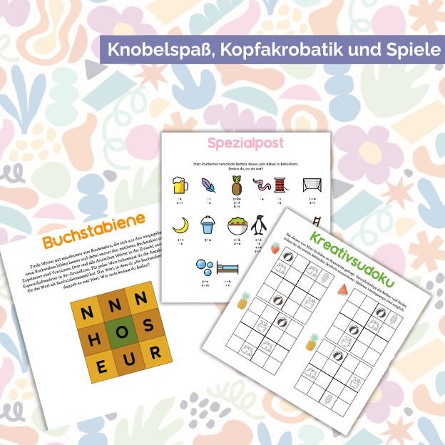 - über 20 verschiedene Rätsel, Spiele und Denkaufgaben