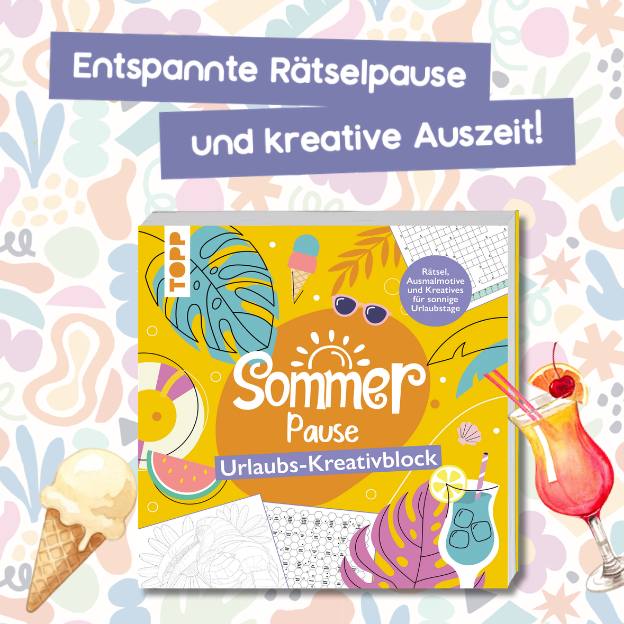 Ob am Strand, in den Bergen oder auf deinem Balkon – dieser Kreativblock ist der ideale Begleiter für deine Sommerabenteuer! Auf 160 sommerlich gestalteten Seiten erwarten dich spannende Rätselklassiker wie Sudoku und Kreuzworträtsel, knifflige Logicals oder Buchstabenrätsel. Zusätzlich sorgen Ausmalseiten und Motive zum Weiterzeichnen für kreative Impulse, um den Kopf freizubekommen und die Seele baumeln zu lassen. Mit unterhaltsamen Spielen wie Schiffe versenken oder Tic Tac Toe könnt ihr euch auch zu zweit die Zeit vertreiben und die langen warmen Sommertage mit ganz viel Spaß und Abwechslung füllen.