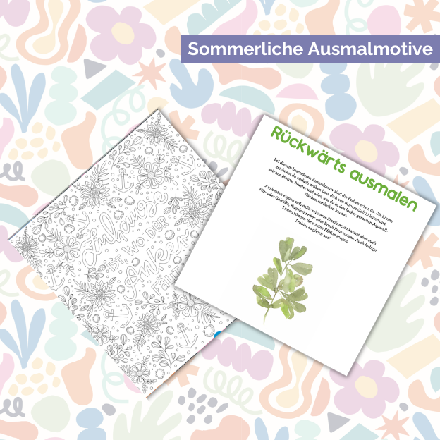 - sommerliche Motive zum Ausmalen und Weiterzeichnen