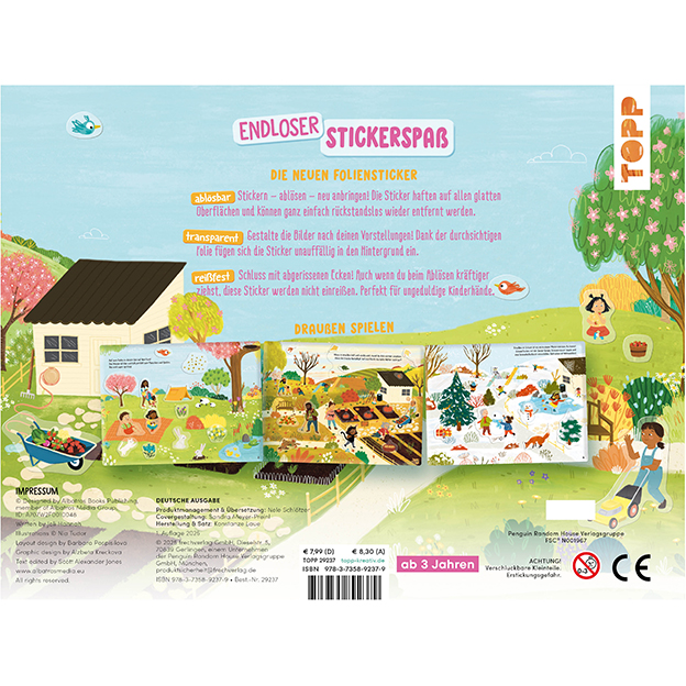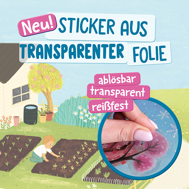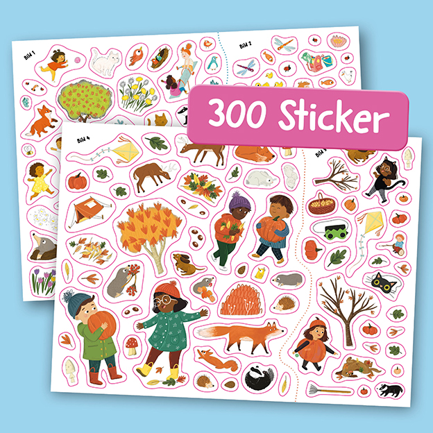 Unterwegs in der Natur gibt es das ganze Jahr über viel zu erleben und zu entdecken. Mit über 300 fantastischen Folienstickern kannst du die Bilder ganz nach deinen Wünschen gestalten. Und das Beste ist, dass du die Sticker auch wieder ablösen und an anderer Stelle platzieren kannst. Du kannst also immer wieder neu dekorieren und deine Lieblingsszenen erschaffen. Kleiner Tipp: Die Sticker haften auf allen glatten Oberflächen, also zum Beispiel auch auf Fenstern!