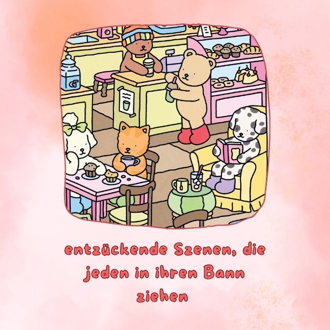 Zeichne alltägliche Objekte wie Pflanzen, Möbel, Essen oder modische Accessoires und bevölkere deine Szenen mit knuffigen Charakteren – vom backenden Häschen über den gewissenhaften Bär-rista bis zum gärtnernden Welpen. Zücke deine Lieblingsstifte, um ihnen Leben einzuhauchen und entspanne dich beim Ausmalen der sieben exklusiven Ausmalseiten von Bobbie Goods.