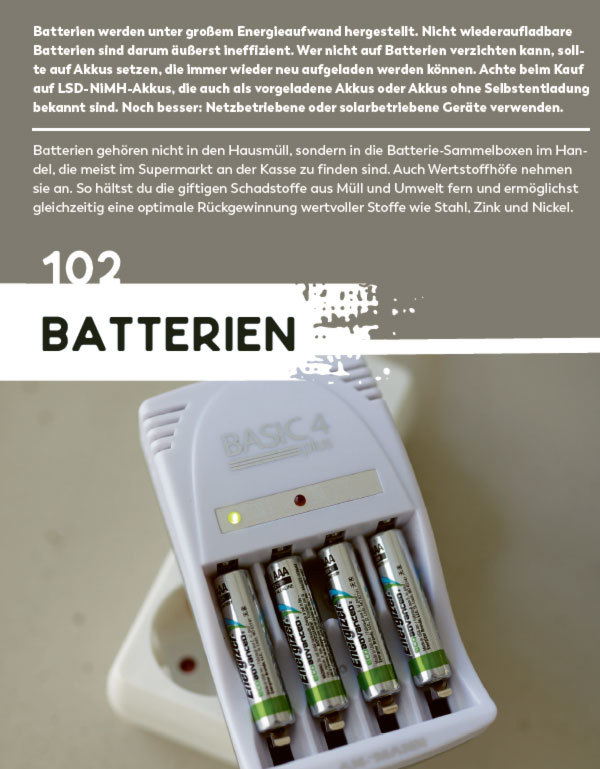 Egal ob Wasser oder Strom – unter „ENERGIE & RESSOURCEN“ bekommst du jede Menge Input, wie du zu Hause und im Büro Energie und Geld sparen kannst. Außerdem steht korrekte Mülltrennungund Entsorgung von Altglas, Papier, Batterien und Elektroschrott auf dem Programm.