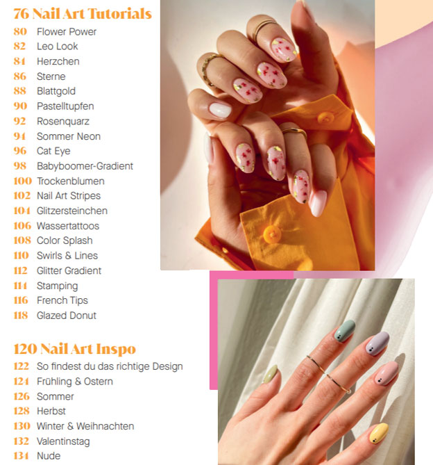 - detaillierte Schritt-für-Schritt-Anleitungen für viele Nail-Art-Techniken