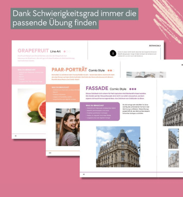 - Schritt-für-Schritt-Anleitungen zu Onelines, Skizzen oder klassischen Zeichnungen