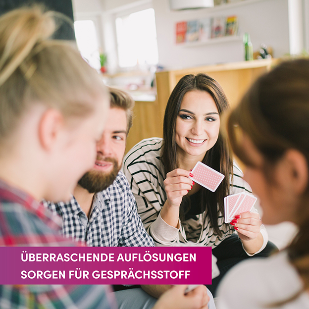 In der Mitte liegen verschiedene Bildkarten aus, für die sich die unterschiedlichsten Assoziationen bilden lassen. Also schnappt euch Zettel und Stift und notiert euch die Bildpaare, die euch ins Auge springen. Aber Achtung: Nur wenn mindestens eine andere Person dieselbe Verbindung notiert hat, kriegt ihr Punkte. Wer denkt gleich und findet dieselbe Verbindung?