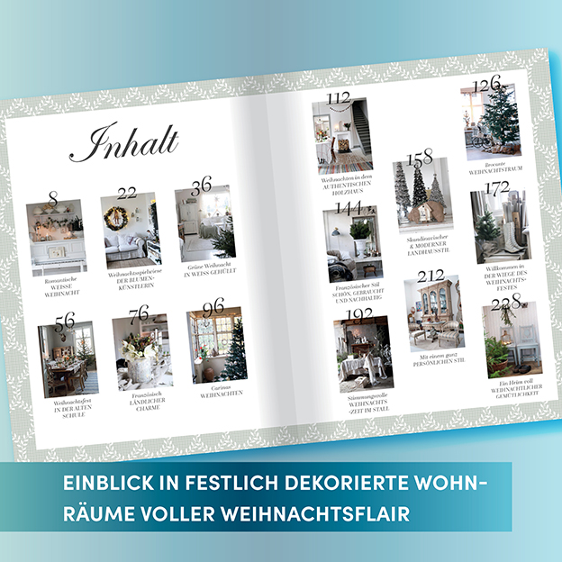 Die renommierte Fotografin Tine Gertsen von Jeanne d’Arc Living fängt in atmosphärischen Bildern den Zauber festlich geschmückter Häuser ein. Natürliche Materialien, liebevoll arrangierte Vintage-Fundstücke und gebrauchte Schätze stehen im Mittelpunkt der weihnachtlichen Einrichtung. Stimmungsvolle Deko-Ideen im Brocante-, Shabby- und Vintage-Style schaffen eine warme, nostalgische Atmosphäre und machen jedes Zuhause in der Adventszeit zu einem besonderen Wohlfühlort.
